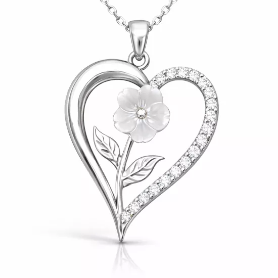 Gümüş Kalpli Beyaz Gül Kadın Kolye