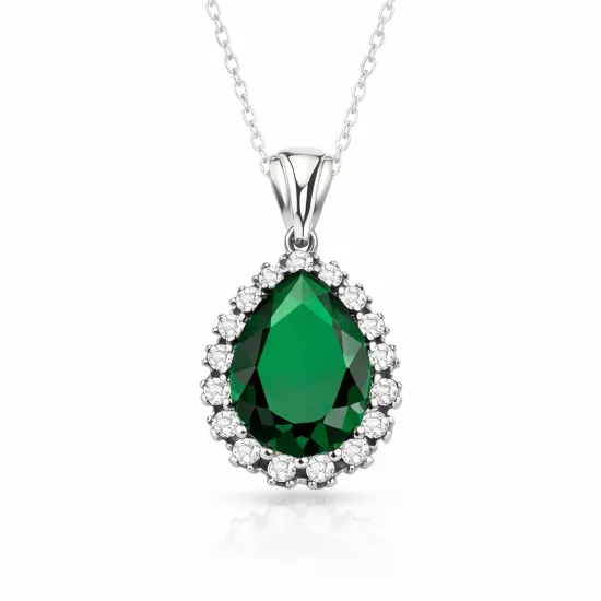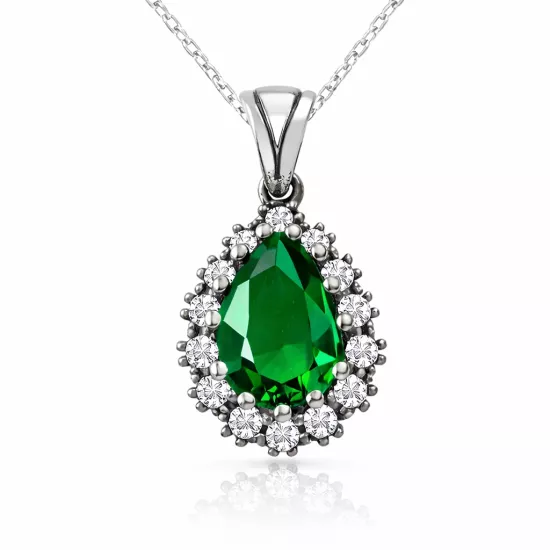 Gümüş Zümrüt Taşlı Hürrem Kadın Kolye