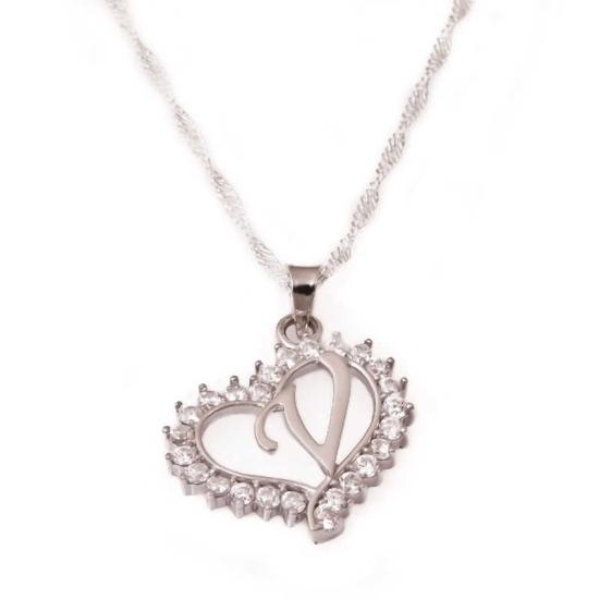 Gümüş V Harfi Kalpli Bayan Kolye